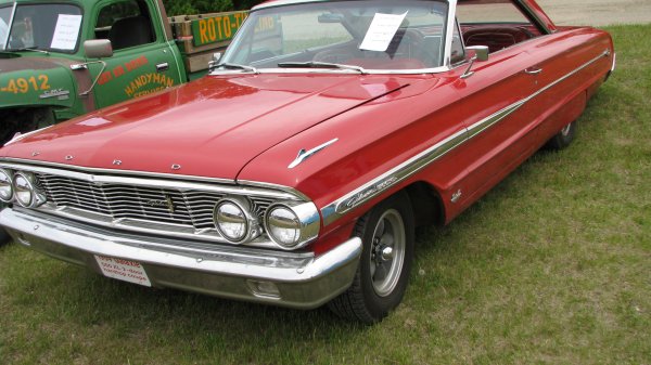 The exterior and interior view of a 1964 Ford Galaxy XL............. and a 1956 Chevy Bel Air.